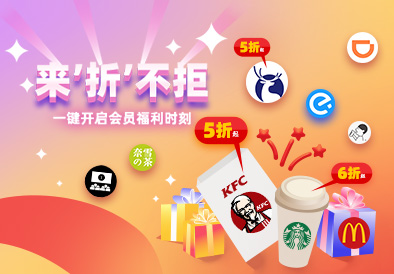 肯德基5折、星巴克6折、瑞幸咖啡5折、滴滴打車8折……超多會員專享折扣,開啟會員福利時刻!